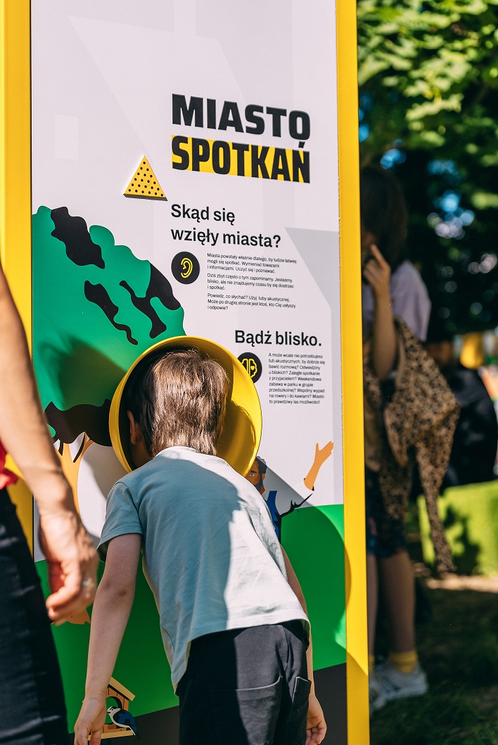 - strefie interaktywnej, z dedykowanymi łamigłówkami dla dzieci w różnym wieku, m.in.: zobacz i policz linie papilarne drzewa, pokonaj w jak najszybszym czasie miejski labirynt rowerem oraz samochodem, pomóż miejskim sąsiadom w znalezieniu swoich atrybutów;