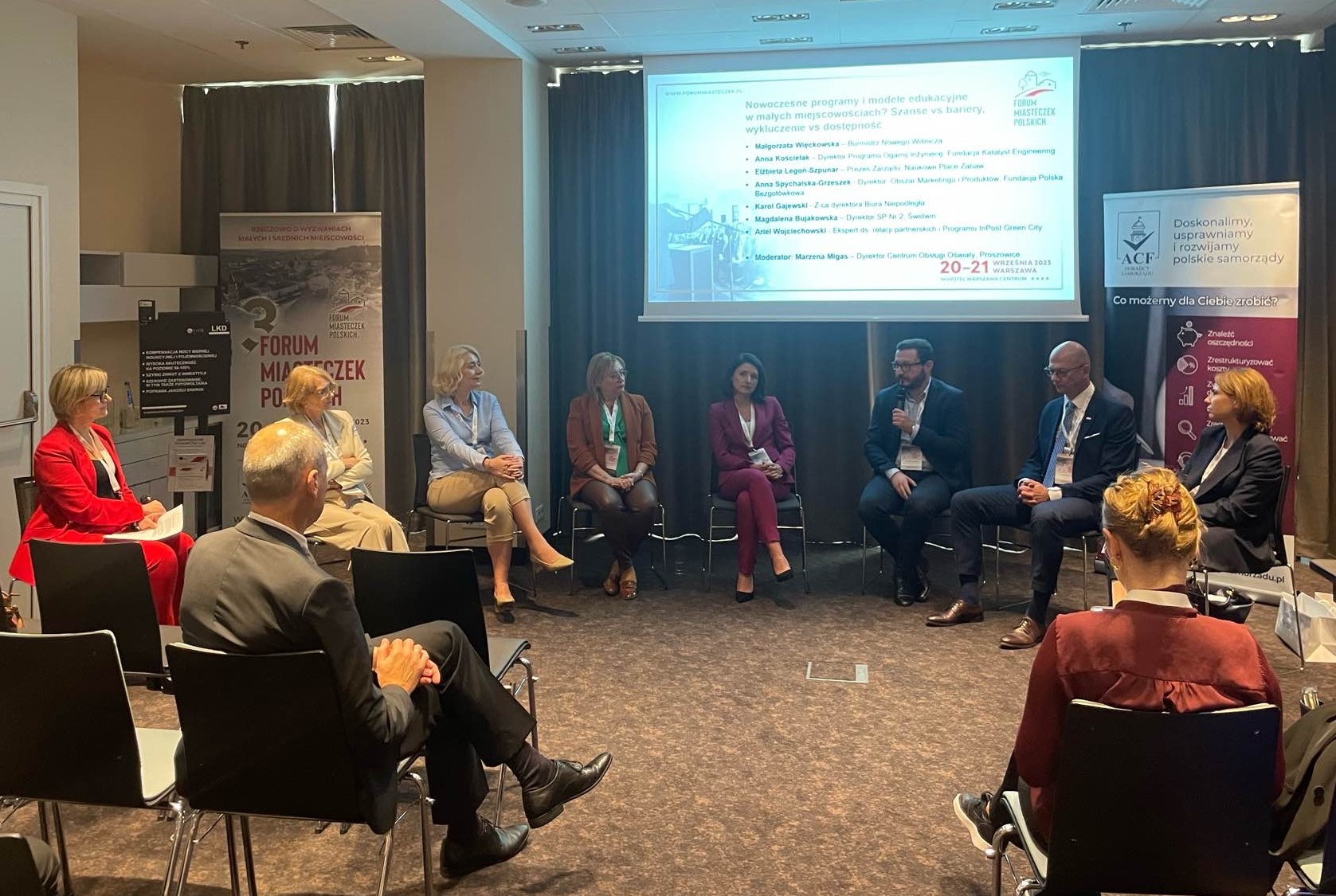 To właśnie w panelu dyskusyjnym poświęconym edukacji brał udział nasz przedstawiciel – Ariel Wojciechowski, ekspert ds. relacji partnerskich i Programu InPost Green City. W dyskusji pn. „Nowoczesne programy i modele edukacyjne w małych miejscowościach? Szanse vs bariery, wykluczenie vs dostępność” dzielił się doświadczeniami oraz rozwiązaniami stosowanymi w inicjatywach edukacyjnych Programu InPost Green City.
